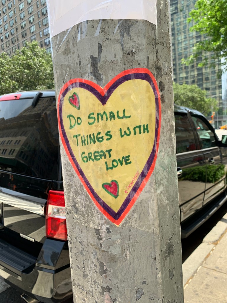 A small act, like giving a stranger a casual smile when entering a the grocery store or an elevator single file, when performed with love, becomes vast. In all the chaos, this message is reverberating … that love and caring are the most important things in the world.
