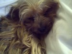 Ugh, love is everywhere. Even my dog, Brie, has become a flirt. In fact, she has fallen in love with a Cairn terrier down the block. When he comes within a few feet of her, she pounces in front of him frantically, and then runs away. My mature terrier repeats this frantic ritual 3 or 4 times until totally exhausted. Then,. with her last burst of strength, she sprints down the street, dragging me like roadkill. She also started to wake up every morning at 3 am to flirt with the newspaper delivery guy. In the middle of the night, she listens for the “thud” that is her call to duty. Then, she jumps out of my bed like Bat Dog and arrives at the door within a nanosecond. First there’s the low guttural growl. ” Grrrr ” Then a soft “arf….arf.”